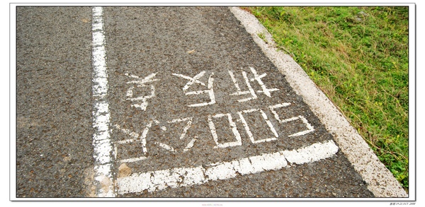 在離開燈塔後,經過的路上發現有個有趣的噴字,這應該是燈塔旁的軍營,讓阿兵哥跑步時用的一個記號吧!跑到這個記號處,表示已經跑了五百公尺了,再跑回去等於一公里,不知道可不可以偷懶,不跑到記號處就折返呢?