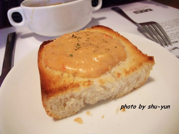 餐前麵包有大蒜麵包跟蝦醬麵包可以選擇, 我們選擇了蝦醬麵包...