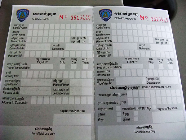 在機上寫了 "出入境卡"、"海關申報卡", 另外入境繳費時, 會再寫一張, 忘記什麼卡了...